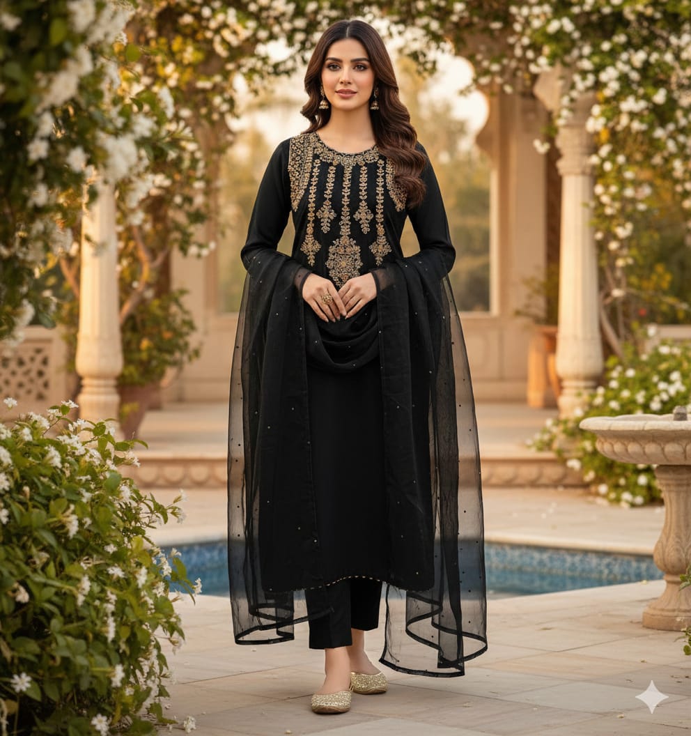 Restock Organza 3PC Suit – Handmade Tilla Aari & Kundan Work | Luxury Festive Collection